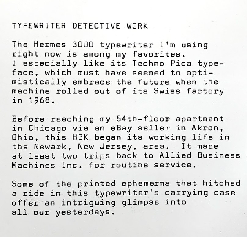 […] During the COVID-19 pandemic, an Italian graphic designer contacted me with a unique request. He wanted to create a digital typeface from the Techno Pica characters on my Hermes 3000 angletop typewriter. […]